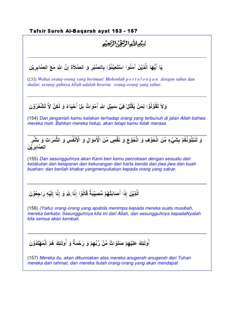 Tafsir Al Quran Surat Al Baqarah Ayat 153 157