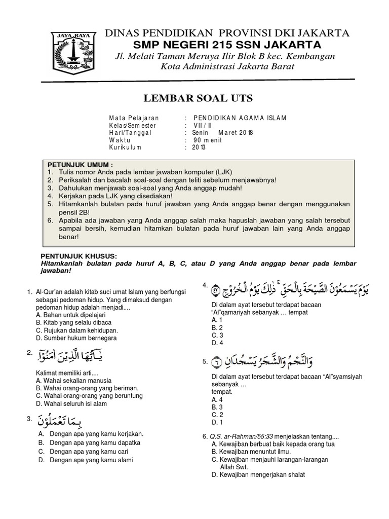 Soal Uts Pai Kelas 7 K 13 Tp 2017 2018