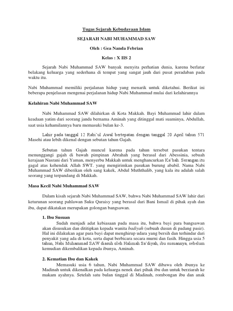 Tugas Sejarah Kebudayaan Islam Sejarah Nabi Muhammad Saw Oleh Gea Nanda Febrian Kelas X Iis 2