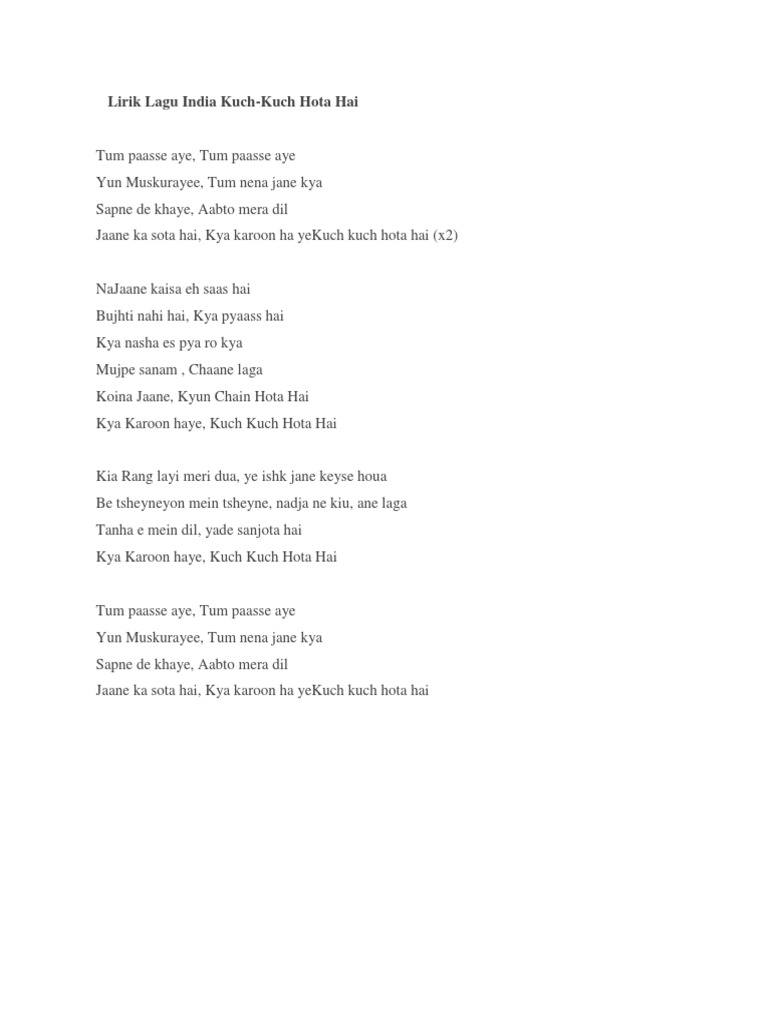 Kuch Kuch Hota Hai Lirik Lagu Hindi Language Media Cinema