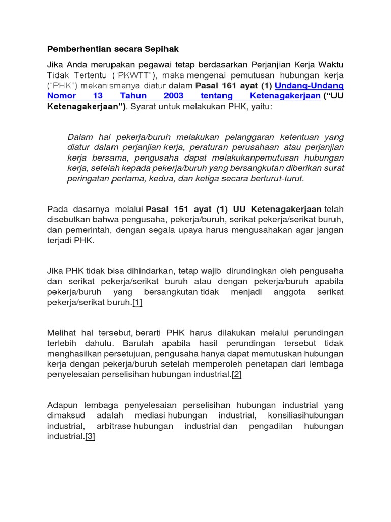 Undang Undang Buruh Pemberhentian Pekerja