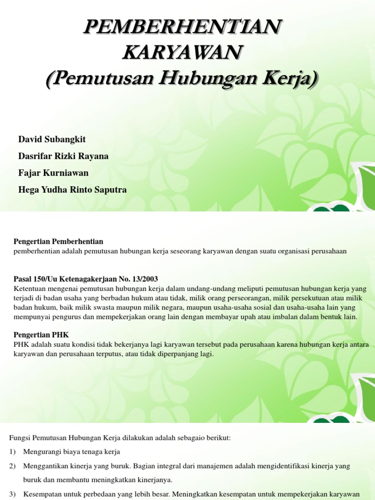 Pemberhentian Karyawan Pemutusan Hubungan Kerja Ppt Download
