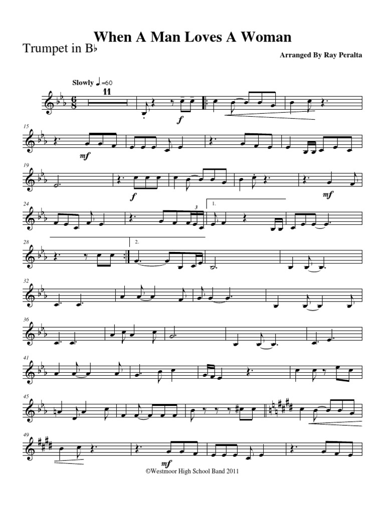 Trumpet Sheet Music When A Man Loves A Woman Easy Intermediate Level Percy Sledge