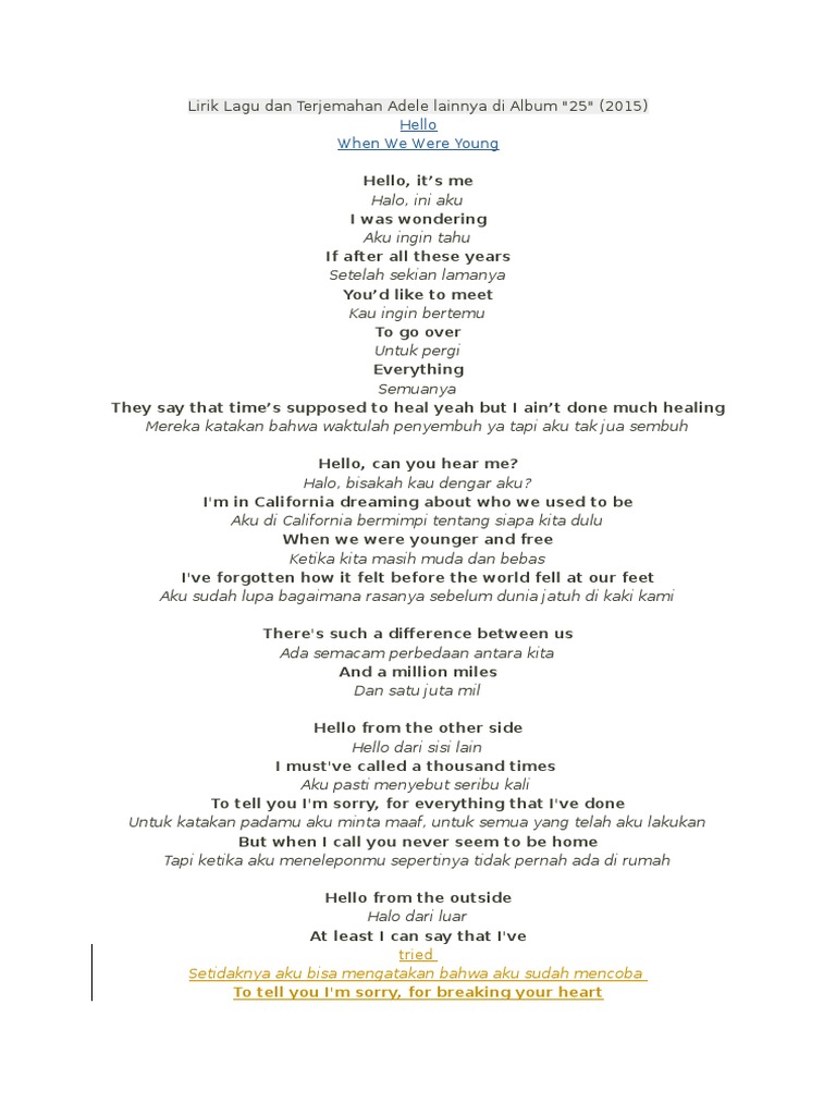Adele When We Were Young Arti Dan Terjemahan Lirik Lagu Arti Lirik Lagu Makna Maksud Dan Terjemahan Lirik Lagu Barat